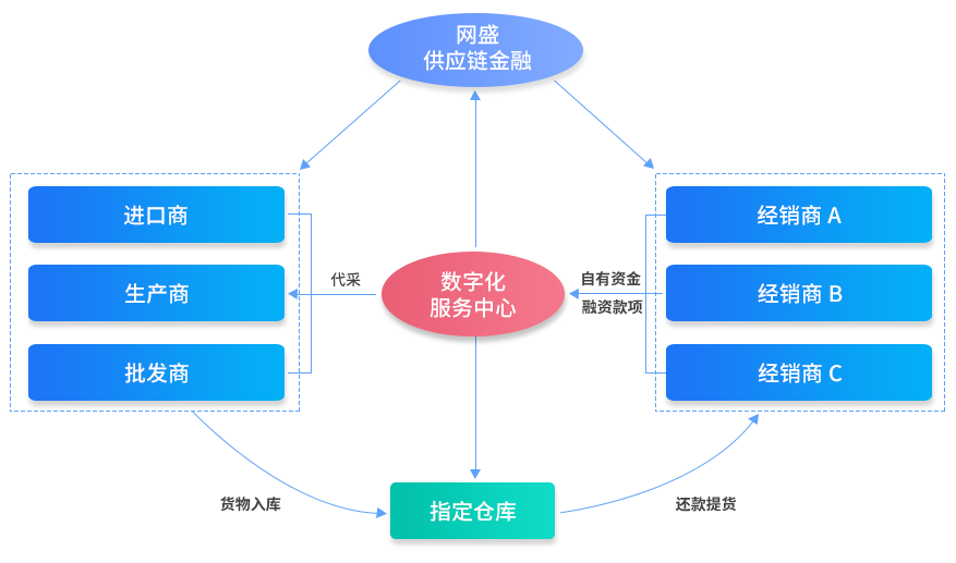 對供應(yīng)鏈單個企業(yè)或上下游多個企業(yè)提供全面交易、金融等服務(wù)。 網(wǎng)盛供應(yīng)鏈金融是依托網(wǎng)盛數(shù)字化交易平臺及供應(yīng)鏈金融平臺,為